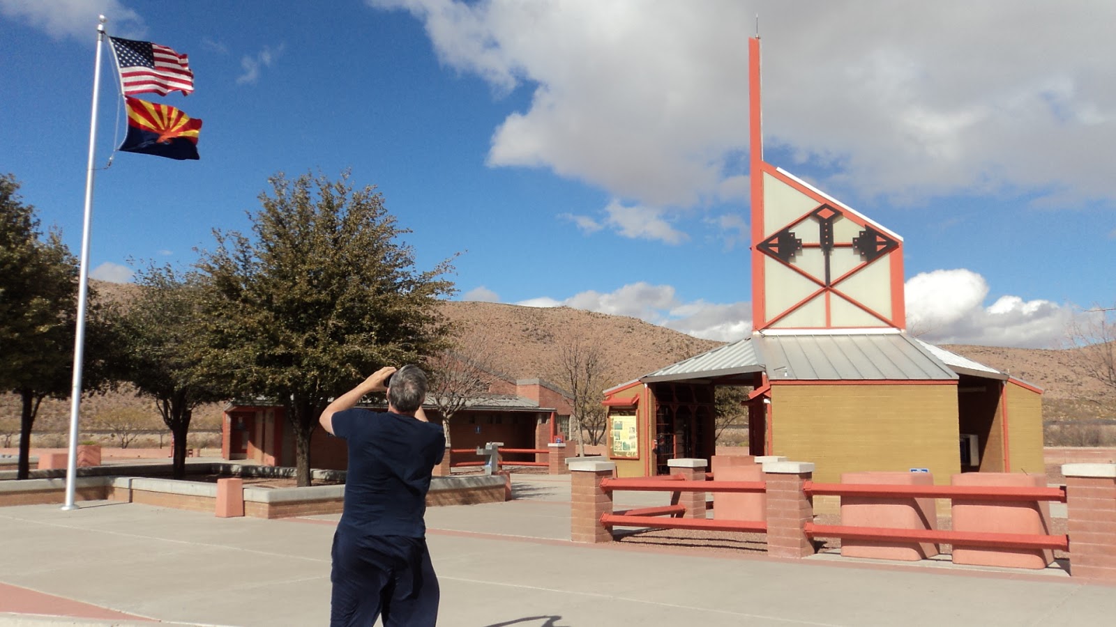 and then it happened! We were coming upon what was supposed to be a weigh station for trucks, but it has been diverted (converted) into a check point by the US Customs and Border Patrol. I was shocked as I was sure we were in "New Mexico" and not Mexico! AND I had grapes and cheese in the car....haha. Scootard said; "you might lose those grapes". So, I prepared myself for the guard telling me that I had to throw them away. I was still reeling from the confusion of having US Customs at a weigh station for trucks.