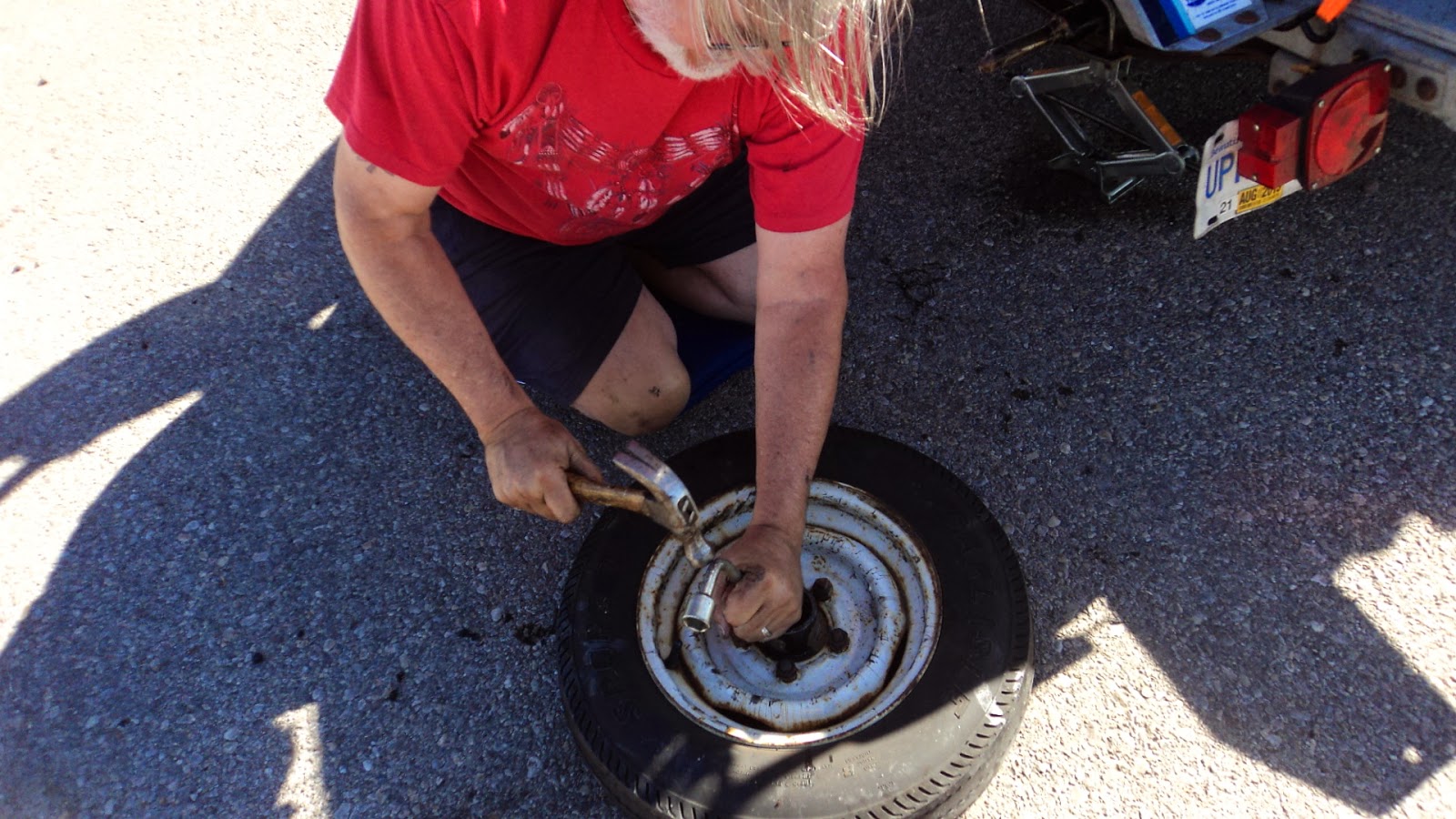 And guess what.......Chris was coming back to the car and happen to look at the trailer on the passenger side and guess what........yep. Now THAT side was completely blown as well. We were sooo fortunate to have purchased that other hub and lunch!